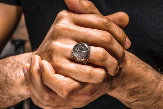 Korsan Yüzüğü Kafatası & Çapa Modelli 925 Ayar Gümüş Yüzük