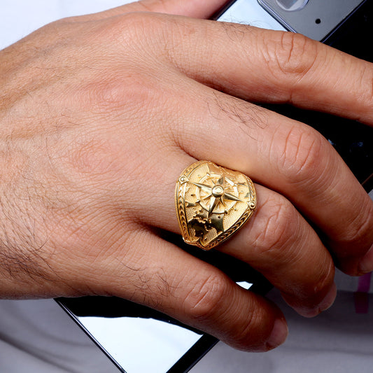 18 Ayar Altın Kaplama Dünya Haritası Ve Pusula Erkek Yüzük