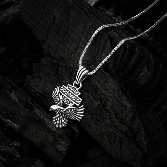 Açık Kanatlı Kartal ve Harley Davidson Motorcu Kolye