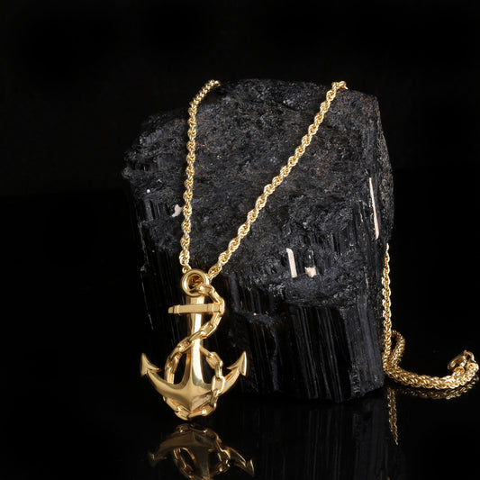 18 Ayar Altın Kaplama Çapa Kolye,925 Ayar Gümüş Erkek Kolye