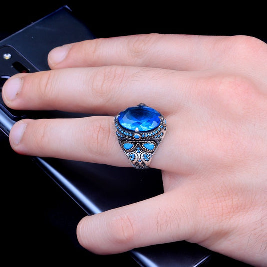 925 AYAR GÜMÜŞ MAVİ RENK AQUA TAŞLI YÜZÜK