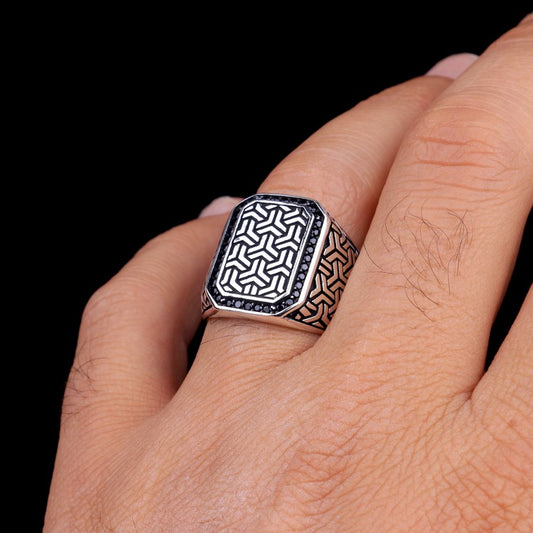Piramit model Yanları Zirkon Taşlı Gümüş Erkek Yüzük