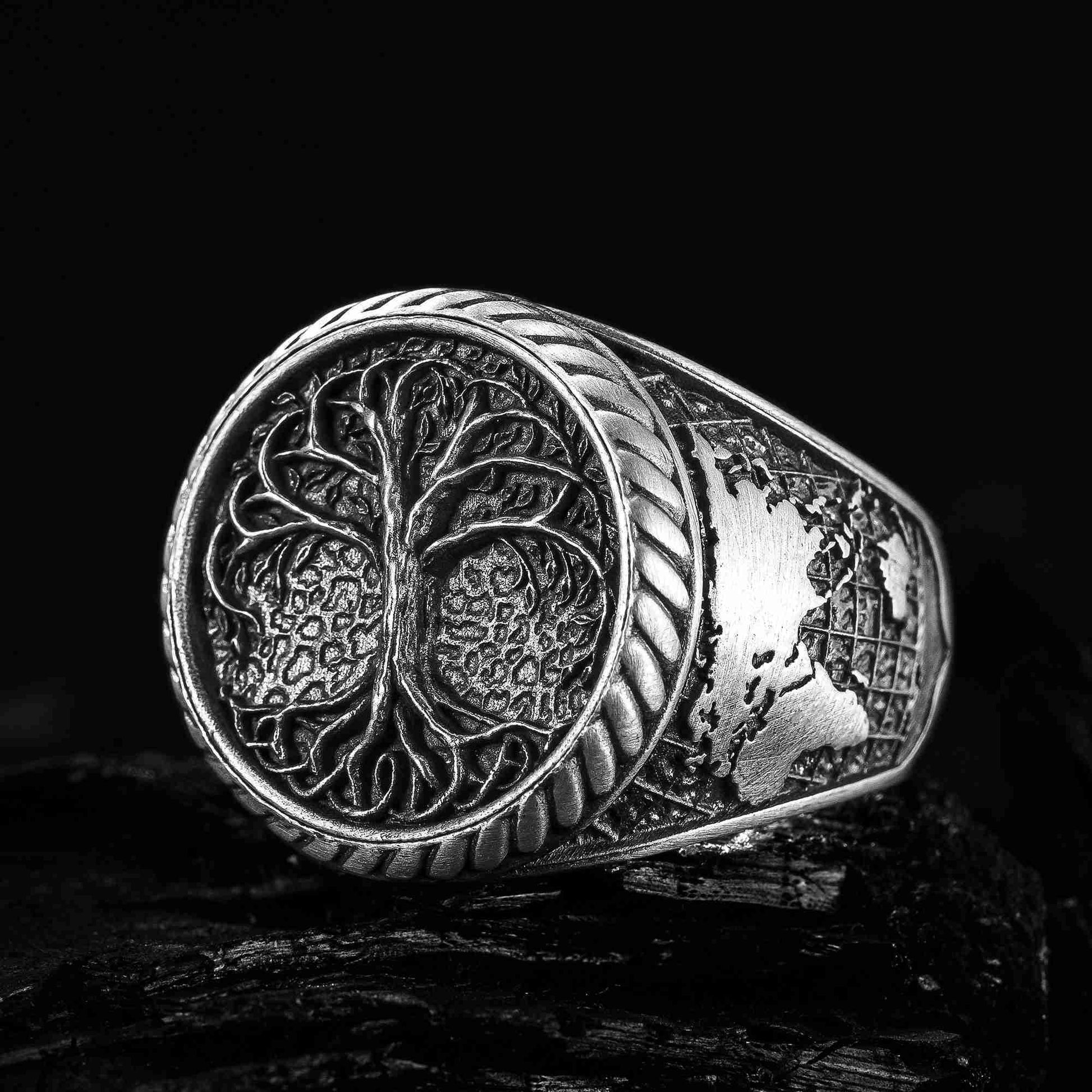 Hayat Ağacı, Dünya Haritası ve Hayat Ağacı Modern Erkek Yüzüğü