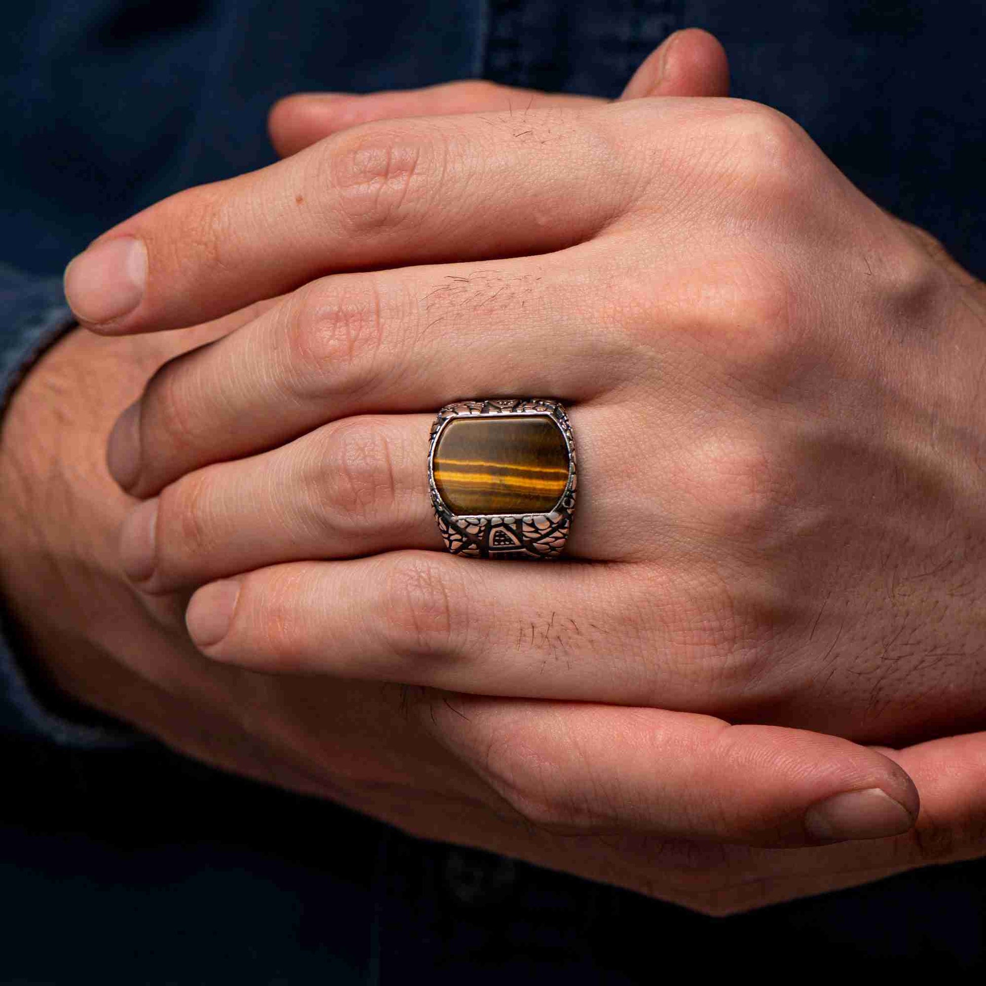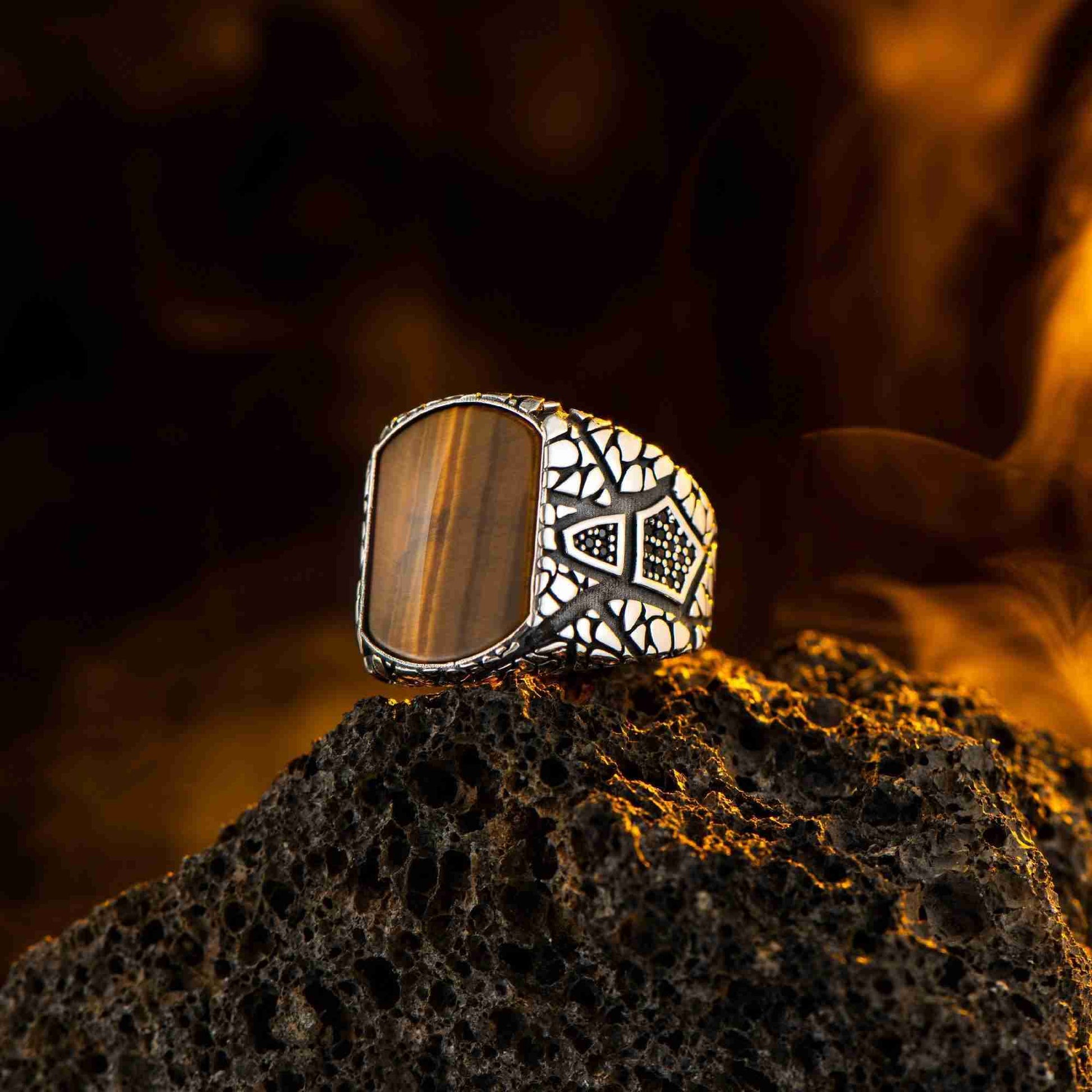 Kaplan Gözü Erkek Gümüş Yüzük, Erkek El Yapımı Yüzük